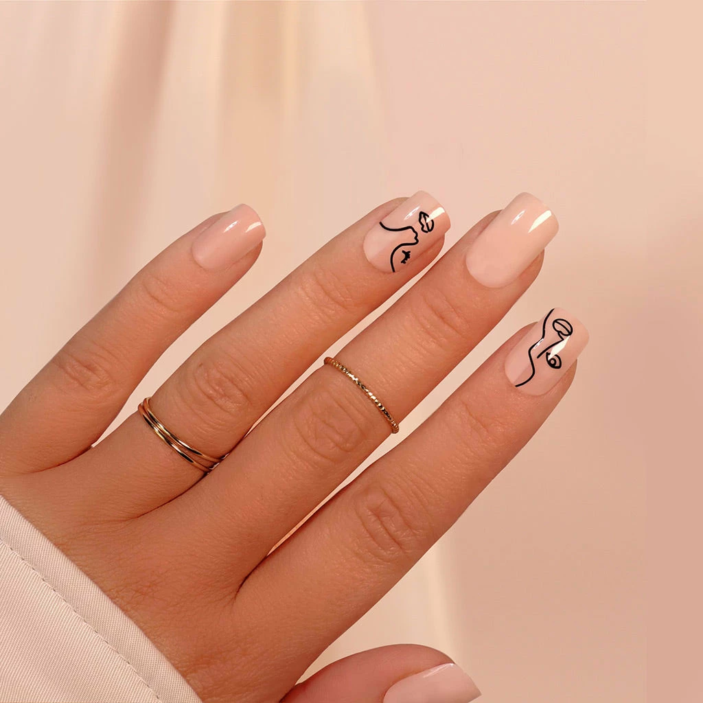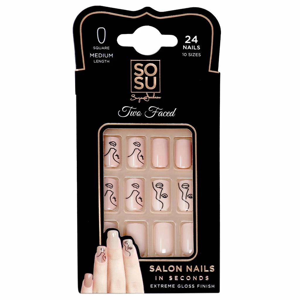 SOSU by SJ False Nails in style Two Faced are Square shape in Medium Length. These high quality false nails offer easy application and removal. If you want to achieve salon style nails with an extreme gloss finish in mere seconds, then these are the false nails for you! These Picasso-inspired nails offer a nude gloss finish.