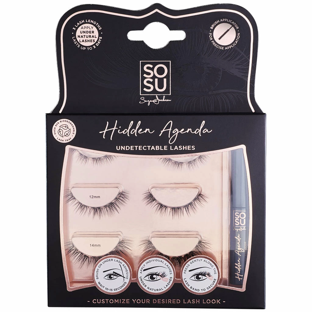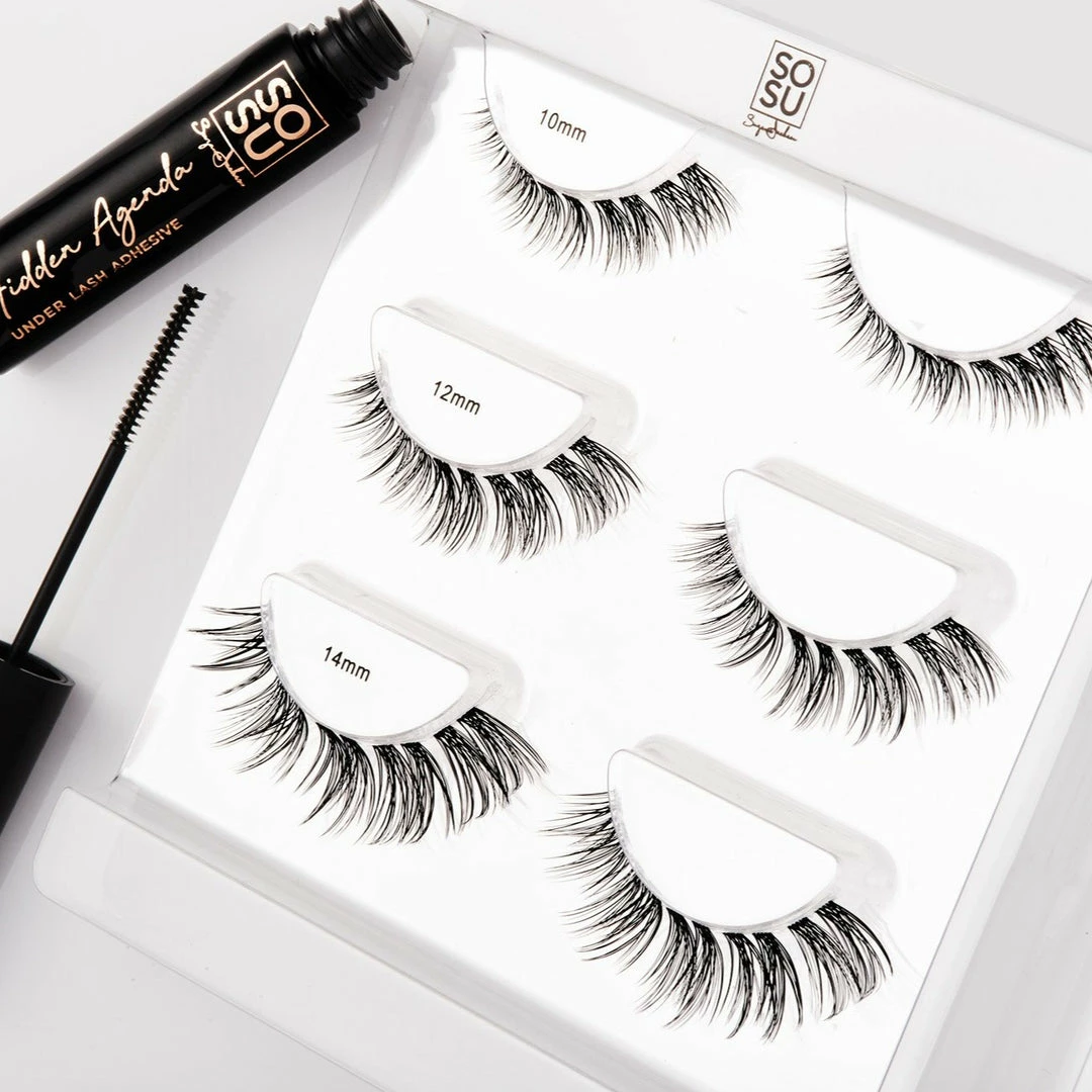 The SOSU by SJ Hidden Agenda False Eyelashes 10-14mm kit contains everything you need to create your very own lash look.