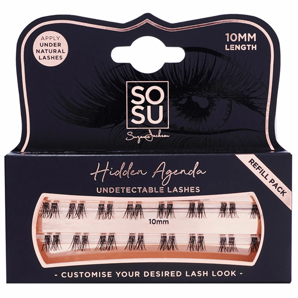 The SOSU by SJ Hidden Agenda Refill Pack in 10MM is the perfect buy if you’ve run out of your favourite length lash clusters from a SOSU Hidden Agenda Starter Kit (sold separately). Hidden Agenda lashes have been designed for application underneath your natural lash line, to create a seamless look once applied. Creating a completely custom lash look has never been easier thanks to the innovative Hidden Agenda lash system.