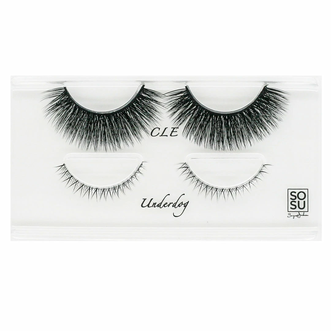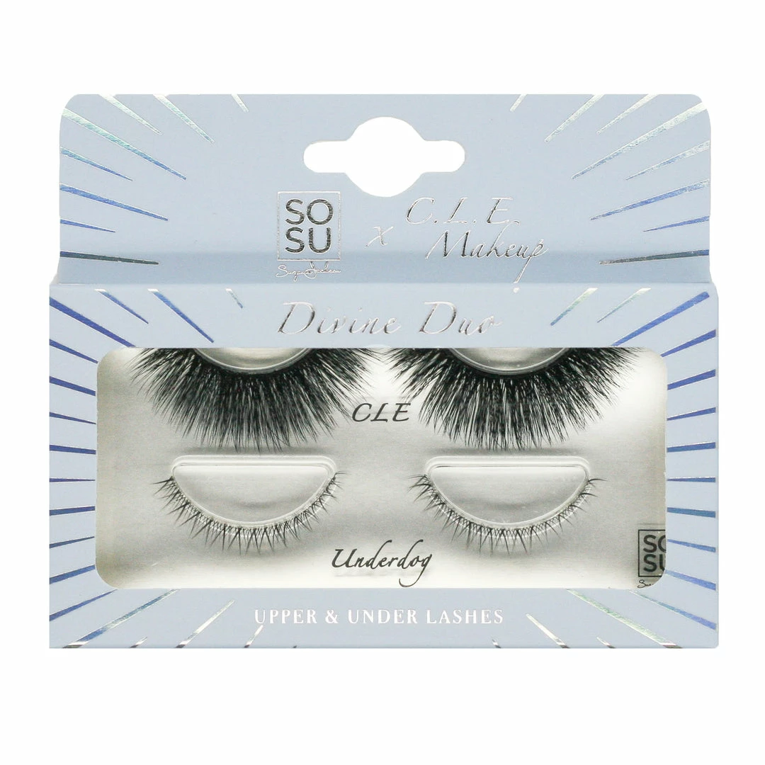 The SOSU by SJ x C.L.E Makeup Divine Duo contains two pairs of stunning lashes! Style CLE boasts extra drama, length and volume with lots of curl. Perfect for if you’re looking for a bold lash to make a real statement. Underdog lashes enlarge and enhance the lower lash line – adding definition and volume to your finish lash look.
