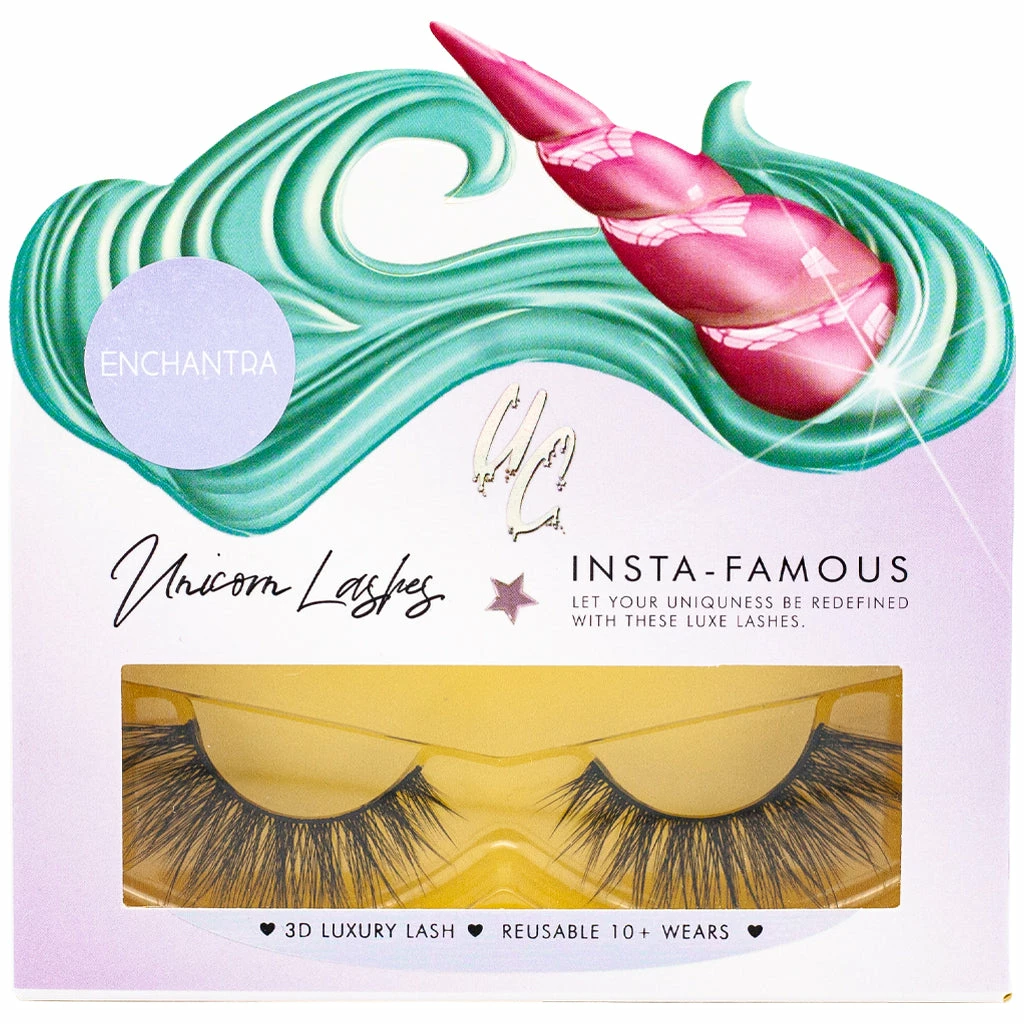 Unicorn Lashes Faux Mink in style Enchantra are the perfect pair of falsies for achieving extreme length and a flawlessly curled finish. The elongated ends enhance the eyes beautifully providing a winged-out effect, while the softly layered lash clusters add medium, wearable volume.
