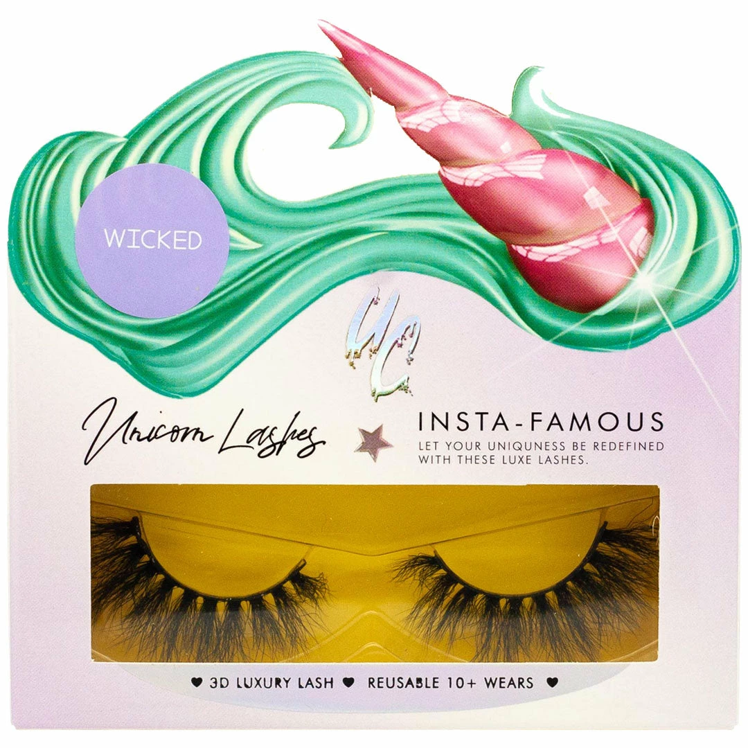 Each box contains one pair of Unicorn Lashes Faux Mink in style Wicked. Lash glue is sold separately. Every order placed here at FalseEyelashes.co.uk comes with FREE 1st Class delivery in the UK when you spend £20 or more. So what are you waiting for? Place your Unicorn Lashes Wicked order with us now!